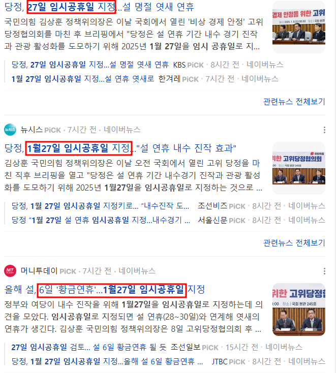 1월 27일 임시공휴일로 인한 연휴 계획